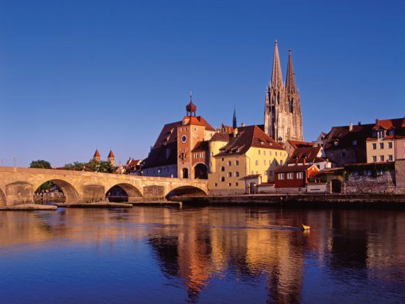 Die bayerische Stadt Regensburg liegt an der Donau und ist durch ihr gut erhaltenes Zentrum und die kleinen, verwinkelten Gassen bekannt.